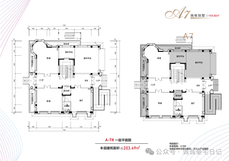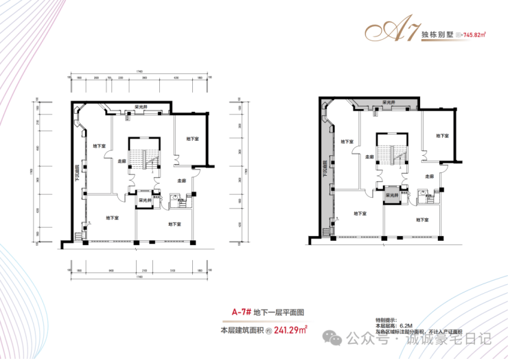 布局:地上三层(4.5米层高)+地下一层(6.2米层高)+900㎡花园