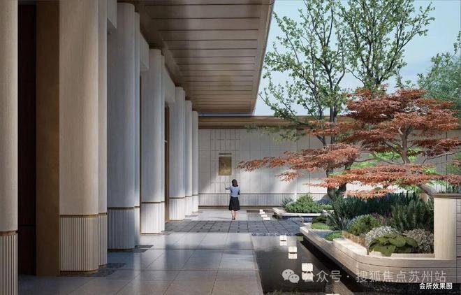 约64米宽恢宏主入口界面,将海派建筑精髓淋漓尽展。迎宾庭院对标顶奢湄南河酒店,精致雅逸,以小见大,引领一种全新生活格调