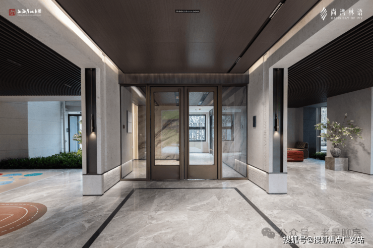 入户大堂采用灰色大面铝板搭配金色格栅,奢华大气。