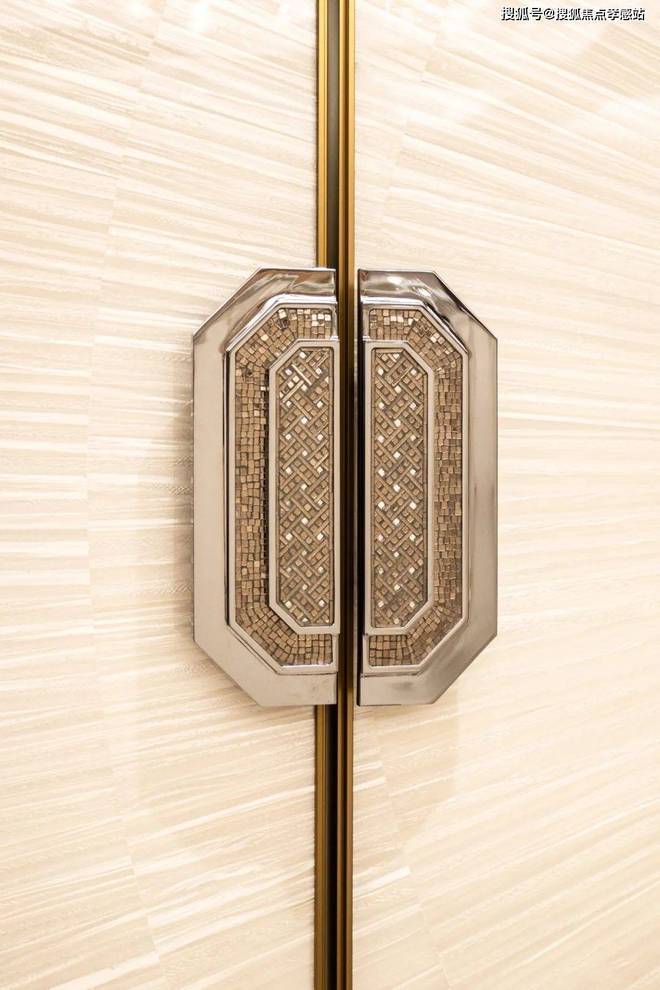 ART DECO风格的黑白拼花大理石地面与大面积镜面墙设计,延展了入户空间的视觉深度。如璀璨星环水晶环形吊灯,增添了归家的仪式感。奢华的玉石背景墙与法式经典家具相映生辉,在静谧与华美之间,彰显翡梵空间的非凡气度。餐厅与西厨之间,八扇手工定制的电动旋转立门,宛如天工造物般的巧思令人惊艳。每一扇门均镶嵌意大利SICIS内含铂金的奢华马赛克,天然贝壳面板在灯光下折射出璀璨光芒。门扇的开合间,实现了空间的灵动转换,私密与开放的完美平衡,为社交与生活增添无限乐趣。每一处细节都经过大师级的匠心打磨,呈现出一场视觉与感官的极致盛宴