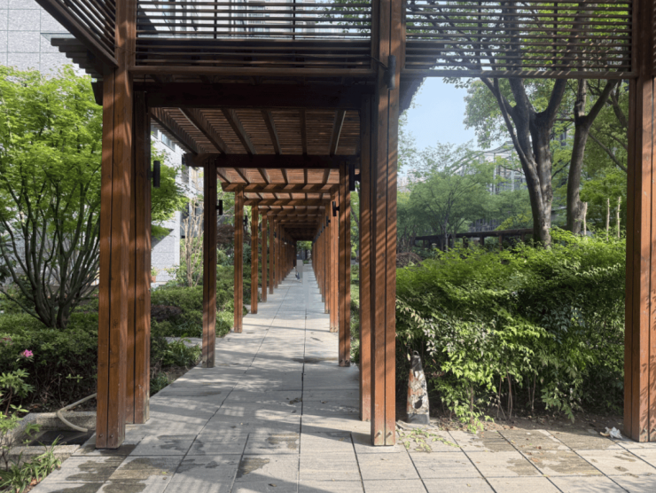 65、庭院、绿化面积是指:小区内集中绿化带、小公园,以及公共活动场所等为小区所有居住人员共同使用权的绿化面积的总和。