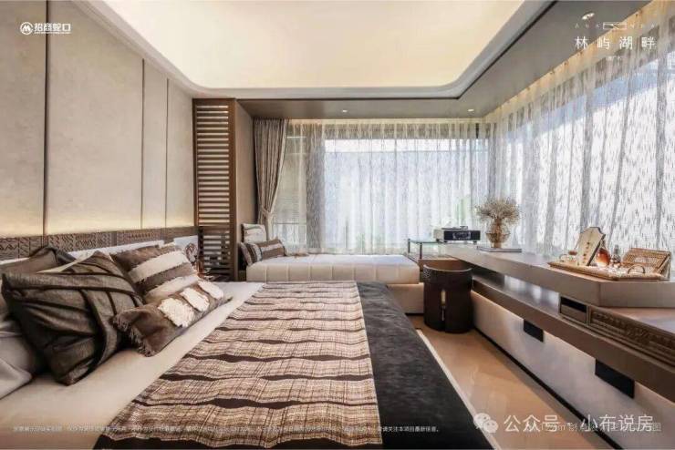 除此以外,项目的主卧、主卫、客卫都设计有飘窗,特别是边套主卧拥有L型巨幅飘窗,带来270°环幕视野。✅✅招商林屿湖畔售楼处电话:400 - 9016 - 520✅✅