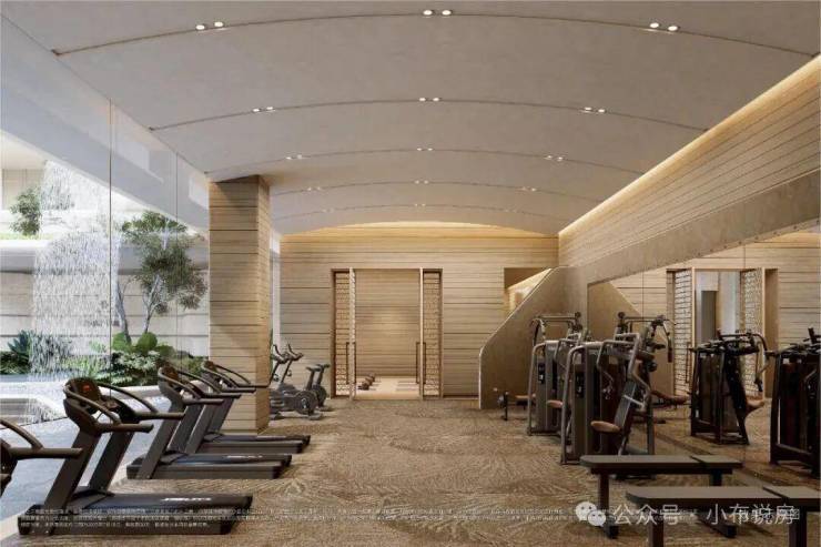 功能上,会所配备私宴厅、瑜伽室、棋牌室、区域首创国标壁球馆、飞瀑园景健身房、嵌入式景观书吧等空间,其中健身品牌采用的是市区10万+同款的沃特罗伦高端健身器械品牌。