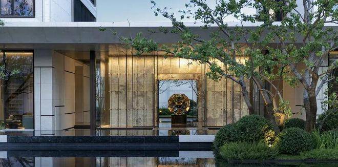 项目三进归家的第一重,归家门厅沿街展面约63米,视觉冲击力极强,并巧妙融入奢石、水景等元素...豪宅气质浑然天成。