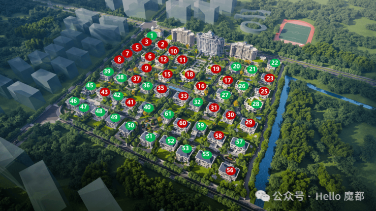289、鸟瞰图:从空中俯视的整个区域的效果表现图。