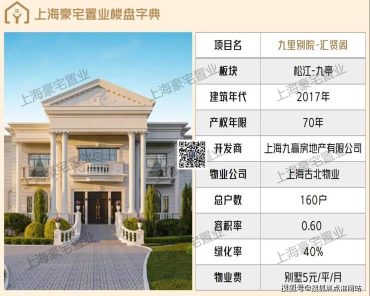 【九里别院】汇贤阁位于上海市松江区涞坊路,与大虹桥板块相邻,小区是由54栋别墅、两栋9层及一栋12层小高层组成。