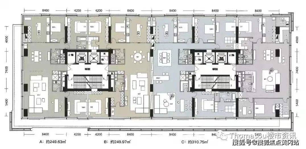 • 面 积:𝟐𝟓𝟎.𝟏𝟒㎡(交付三房两厅三卫)