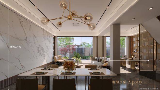 值得一提的是,区别于传统狭长型别墅,联排户型均为大开间、大面宽设计,最大约8.7米南向大开间,媲美大平层的开间尺度与采光。