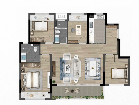 另外,动静分离、主卧套房,这个户型也都做到了。