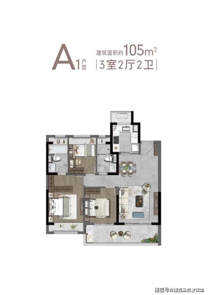 A1户型 105 ㎡3-2-2