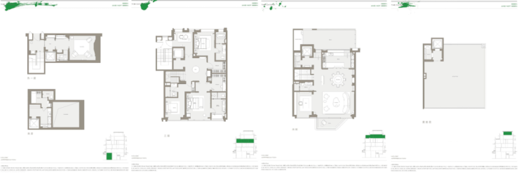 其中,专为低密叠加、联排定制的知行景观组团又以 "蔚、瑞、枫、馥、琛、篁"六组主题造景