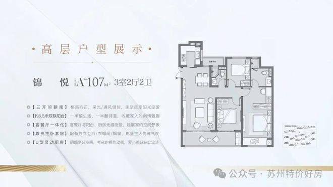 锦悦 高层 107㎡ 户型:三室两厅两卫