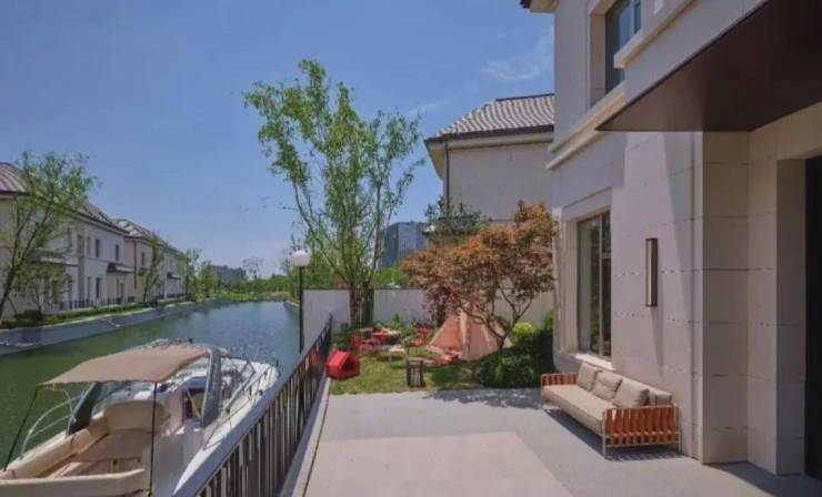 每一排别墅前都有一条渠道,引入水系,可!以!停!游!艇!