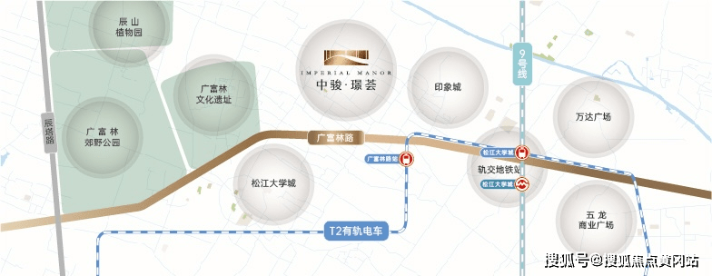 交通配套方面,项目东侧直线距离约500米,设有就是T2有轨电车站点广富林路站,可直达松江新城内部主要节点。2站既可到达9号线松江大学城站,通过9号线,可快速到达七宝、漕河泾开发区、徐家汇、浦东世纪大道等商圈。