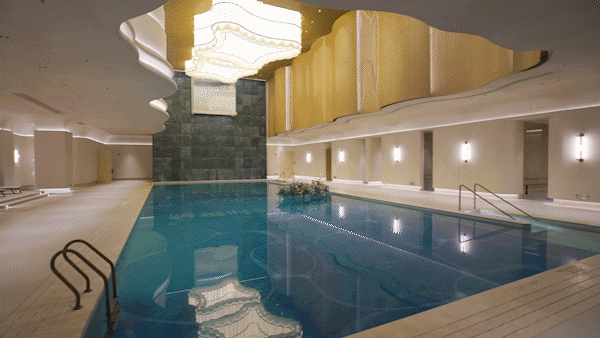 四季恒温泳池独具一格,25米长、11米宽,通过10米挑空与智能天窗设计,实现自然光线与模拟光照的有机互动;旁边还设计了一个垂直瀑布景观、拥有四档深度的儿童泳池,特别是配备家庭更衣室、男女更衣室、桑拿房、汗蒸房以及独立淋浴间均为高规格打造,可以说是目前顶豪市场超高规格泳池!
