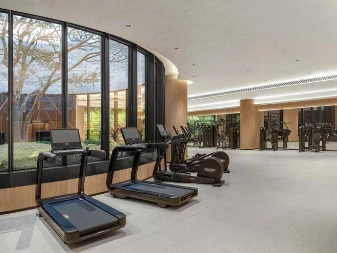 全维运动空间打造上也是匠心十足!瑜伽舞蹈室、自由力量训练区+私教房、以及景观有氧区,空间尺度感相当奢阔!借助下沉庭院与自然采光,打造出花园式的健身体验。