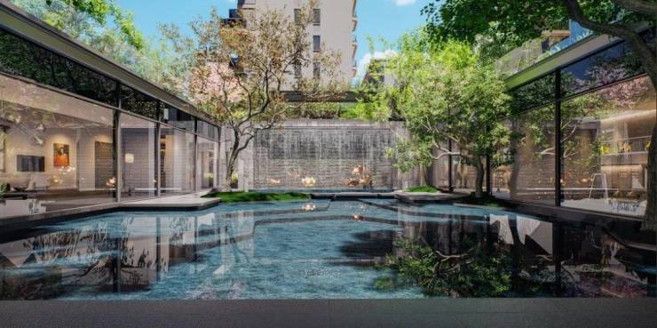 园林设计则融合东方美学与现代功能,打造包括约400㎡下沉水庭院、3000㎡尊享会客厅、900㎡趣味童玩天地、600㎡科普花园、800㎡全龄运动场地以及700米林荫健康跑道,营造出沉浸式、互动性强的社区生态空间。