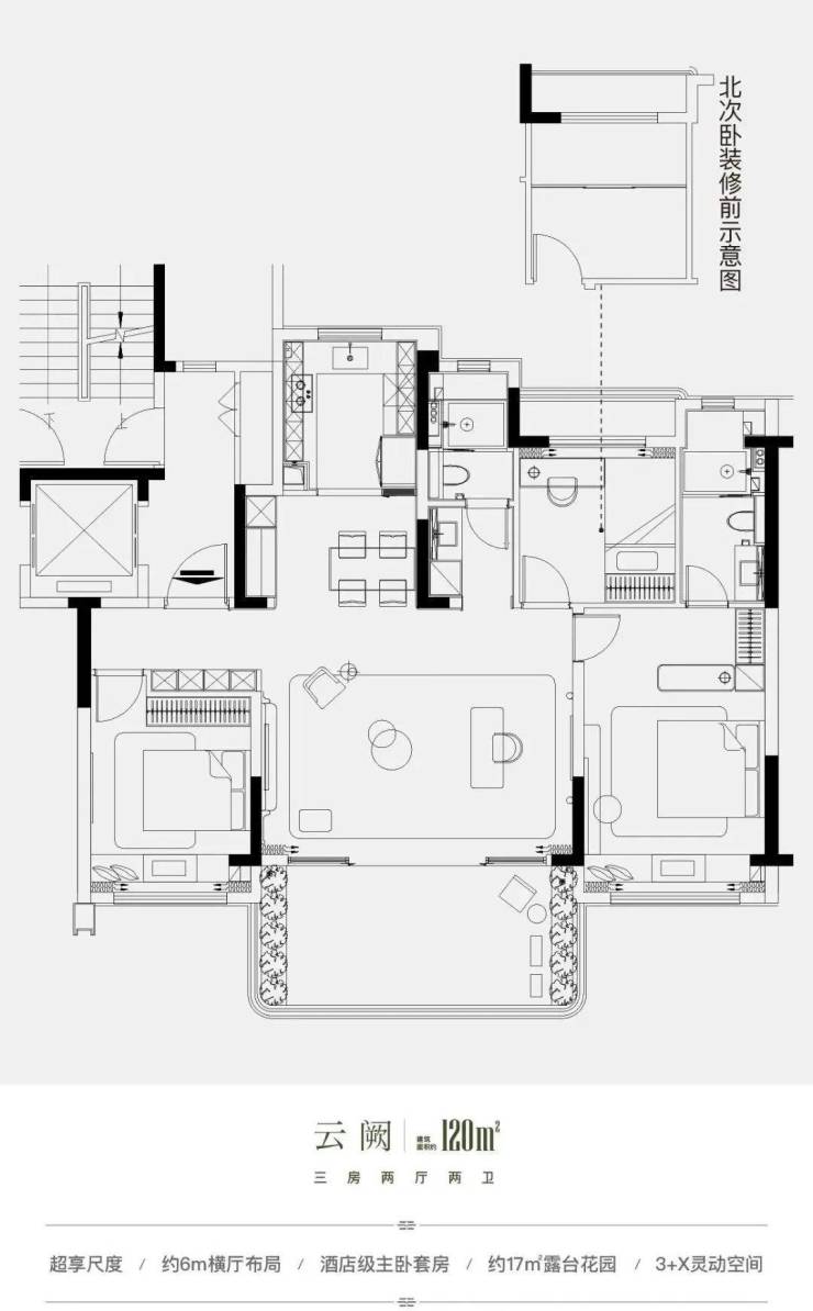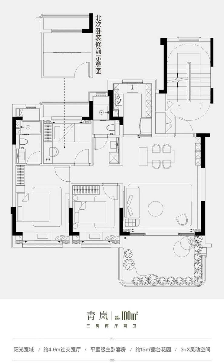 项目主力打造建面约100㎡-148㎡纯洋房,户户南北双花园、空中庭院。