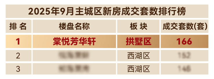 与此同时,9月杭州新房成交排名前3的,清一色都是滨江造。其中之一,就是位于主城武林板块的棠悦芳华轩——9月荣登杭州主城签约套数TOP1宝座。