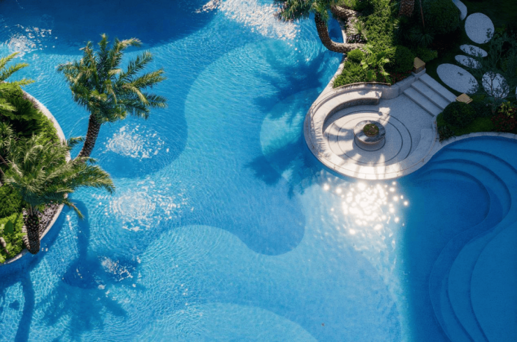 想象一下,一个周末的午后,室内音乐流淌,一杯手中咖啡悠然闲品;室外是湛蓝的碧波,摇曳的棕榈树,还有松弛感满满的下沉式中央浮屿,是否有马尔代夫度假的错觉。
