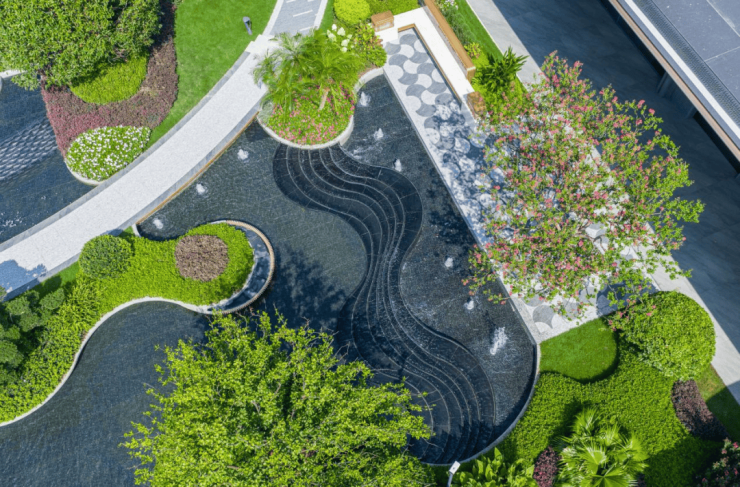 穿门而入,是一方流动的绿洲,叠翠流瀑、悬浮步道,将归家的体验拉满。约300㎡的无限繁星美池,嵌入下沉式水中浮屿,搭配名贵亚热带风情花木,营造浓郁的度假气息。