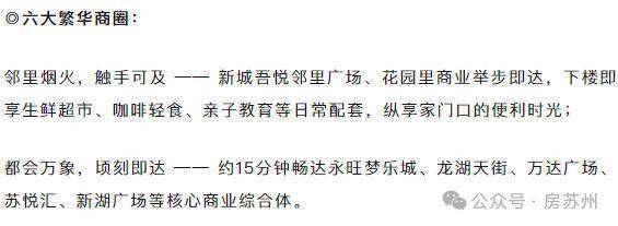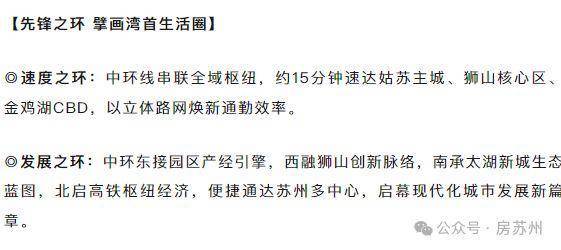◎发展中轴:根据国务院发布的苏州2035城市规划,“通苏嘉科创走廊”与长三角产业协同示范区与此交汇,板块串联苏州高铁新城、姑苏主城、苏州湾CBD三大增长极,驱动千亿级产业集群聚合,持续兑现城市发展红利。