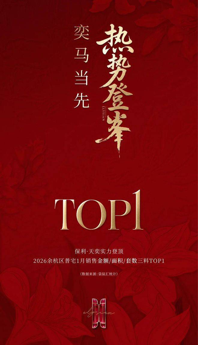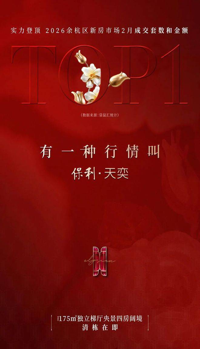 这份沉甸甸的信任,也化作了市场的回响。自保利天奕项目亮相至今,获得了2025年度全国十大轻奢作品、2025年度全国十大好房子、意大利 IIDA AWARD 国际创新设计奖等国内外一众殊荣而就在刚过去的2月,保利·天奕再度荣膺余杭区新房市场金额与套数的双料TOP1(数据来源:袋鼠汇统计)。