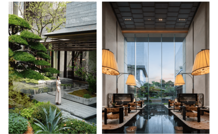 融汇苏州园林的行望居游系统,下沉庭院借鉴苏园的营造手法,构筑镜池云峰、溪山藏壑、鸣瀑留音红枫流霞、曲桥渡溪多重景观空间,还特别引进日本200年罗汉松,全冠移植,静立于下沉庭院,自成一处时光景致,为苏州定制一座典藏当代的山水名园。