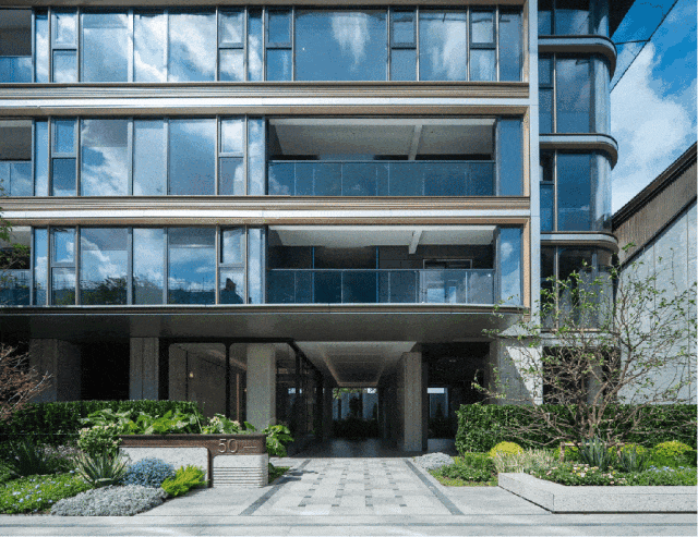 创新的平推窗系统,采用隐框设计,最大程度消弭了视觉上的断点,让建筑表皮如光滑的玉石。