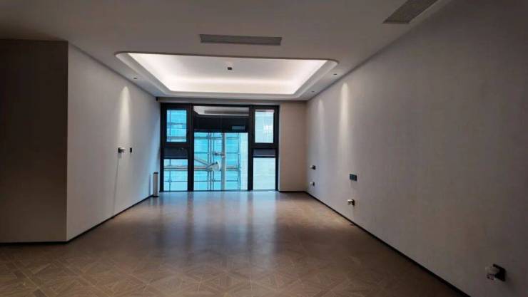 架空层层高达4.2米,所以站在2楼,就能拥有非常好的景观视野。而且墙面采用白玫瑰石材,整体质感非常高。