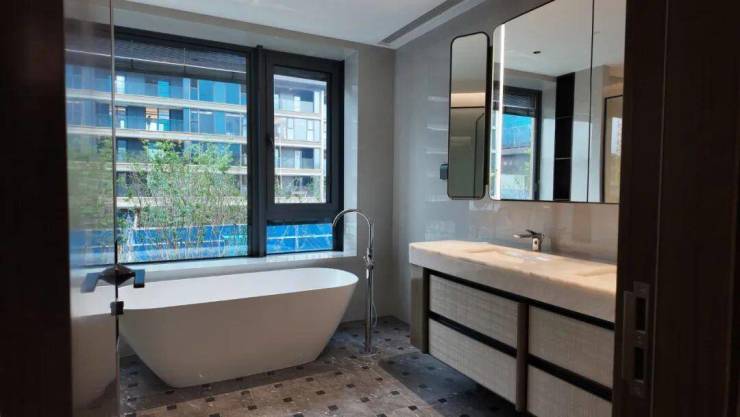 还有只有少数户型能享有的湖景视野,在此被最大化释放,无论是客厅、卧室还是书房,均能透过玻璃将粼粼波光的湖岸、长堤绿植的层次景致尽数纳入室内,实现“推窗见湖、坐卧观画”的居住体验。