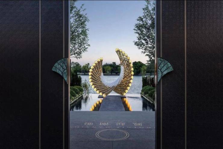 项目主入口坐落于金鸡湖大道与星海街交汇处,堪称震撼的艺术品——“凤起冕旒”,极具张力的奢华之美,为湖西第一殿堂级门廊。