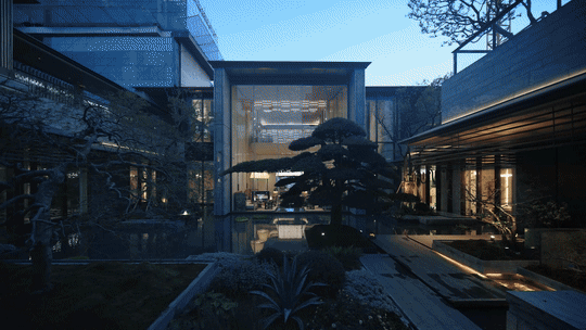 沿主轴铺展四季长卷,借松林、羽毛枫、乌桕、梅花等珍稀树种,呼应春华、夏茂、秋实、冬韵的时序意境。更溯源苏园之意,打造立体流动的山水庭院,模糊了自然与建筑的边界。
