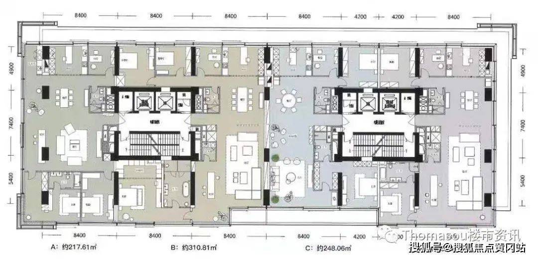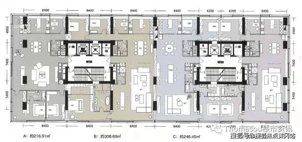 • 面 积:𝟐𝟓𝟎.𝟏𝟒㎡(交付三房两厅三卫)