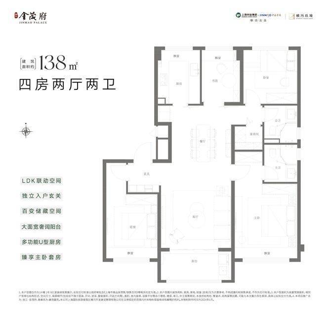 建面约138㎡阔适四房+高定装标