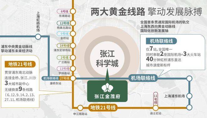 南北贯穿张江科学城的21号线(在建中),则进一步打通项目与张江的价值链条。
