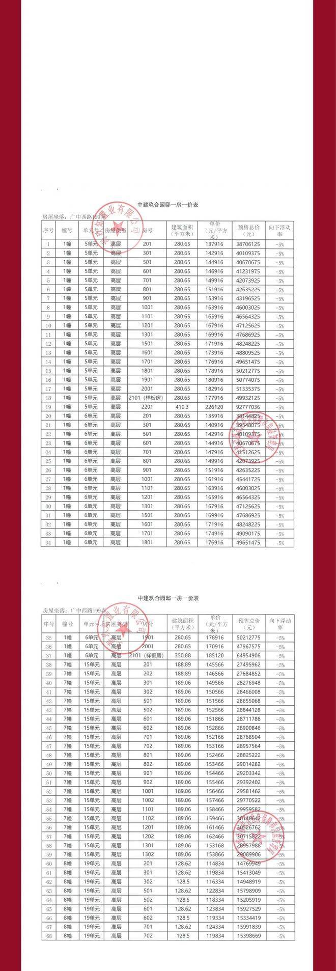 项目一房一价表▼