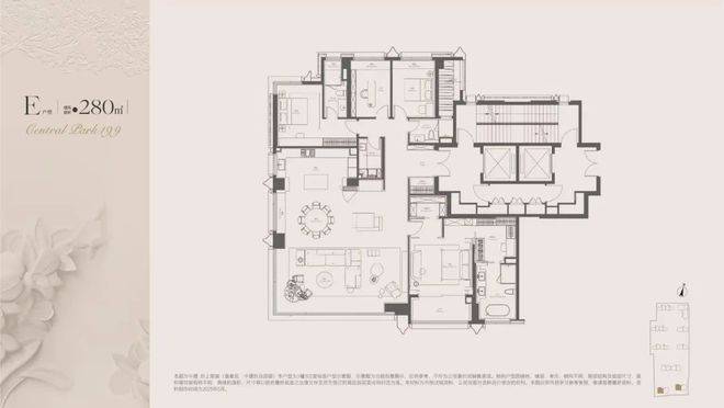 建面约190㎡ C户型,两梯两户,私享梯厅,家的玄关尺度,延伸至电梯厅,增加实际使用面积。入户处大师定制瓷板门牌画,私属感满满,打造专属归家仪制。