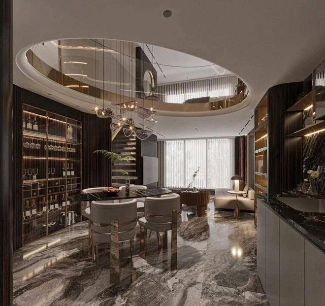 核心区云端行政酒廊(建面约385m),以超五星规制重塑社交场域,甄选全球奢材营造艺术化空间,为层峰人士定制私宴、品茗、艺术鉴赏的专属疆域;配置殿堂级电梯厅、高端宴会厅、水吧、洽谈区、室内高尔夫等糅合当代设计美学与仪式感,为5%塔尖圈层量身定制,每一寸空间皆镌刻定制化奢宅基因。