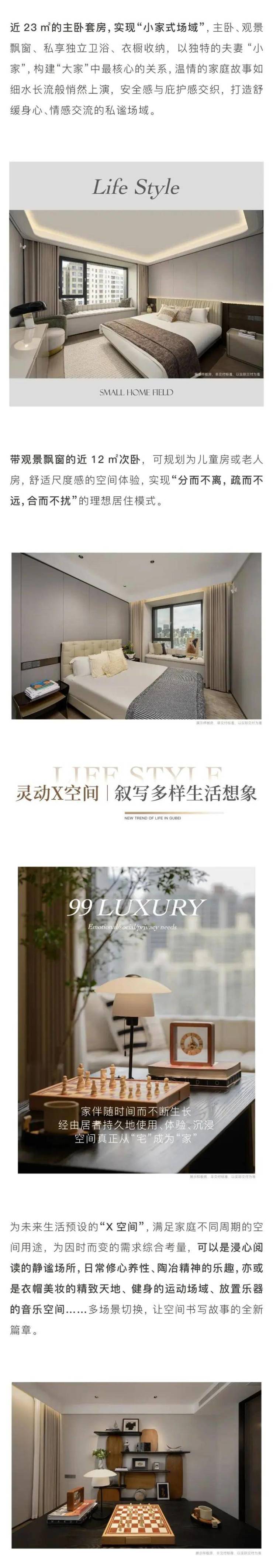 古北99深谙当今高净值人群对于“第二精神空间”需求与对美好关系链接的向往,打造了超大会所,涵盖大型宴会厅、精奢私宴餐厅、风雅茶室、红酒雪茄吧、商务多功能厅、恒温泳池、健身运动、儿童亲子中心等多元场域,实现“个人、家庭、社区、世界”的关系闭环,为业主附加无限拓展的生活场景。