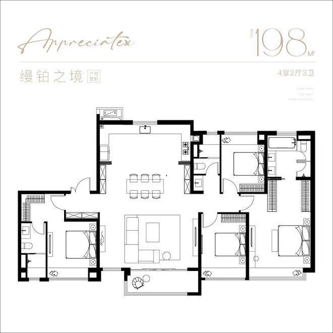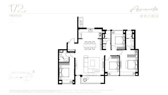 户型设计:双主卧套房,低公摊高得房率,适合改善型需求