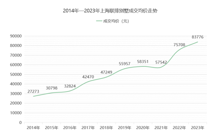 2014-2023年上海联排别墅成交均价