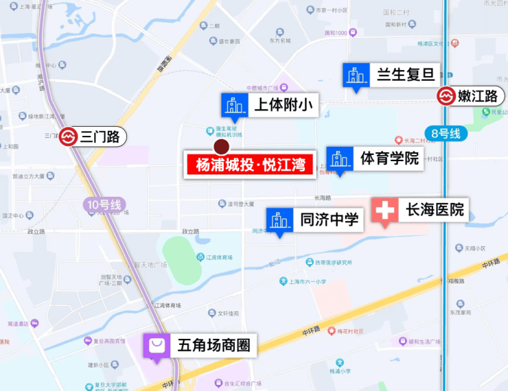 杨浦城投·悦江湾与20号线国和路站 (规划中) 直线距离仅约400米,与10号线三门路站直线距离仅约800米 ,出行非常便利。