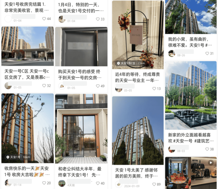 就比如今年1月份天安1号C区交付,在社交平台上随便一搜,就有大量的“宠粉”晒帖。