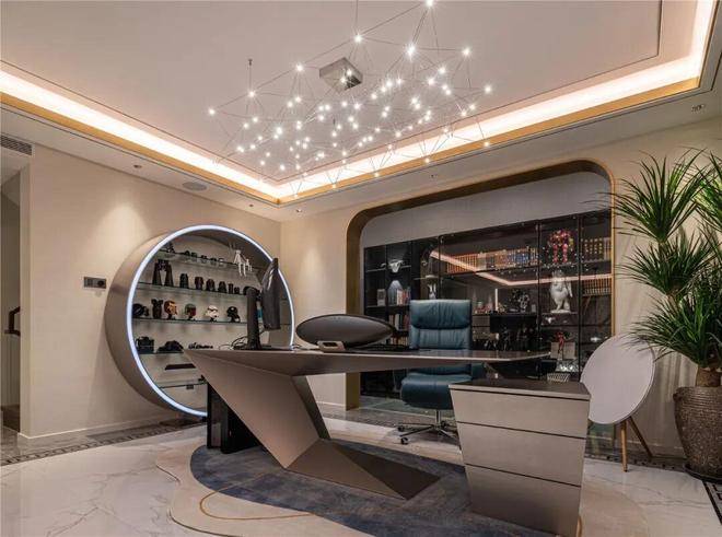 书房的设计融合了正式和随性的元素,营造出既充满庄重、又有趣味的氛围。这种完美结合本应难以实现,但在设计语言的巧妙运用下,却毫不突兀。无论您需要专注工作、还是惬意阅读,书房都能给您带来舒适和愉悦。
