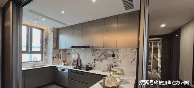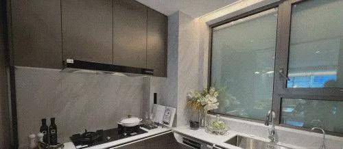 U型厨房,博世灶具+蒸烤箱+洗碗机+冰箱+抽油烟机,弗兰卡的水槽、摩恩的水龙头,还贴心地设置了贝克巴斯垃圾处理器,非常人性化。