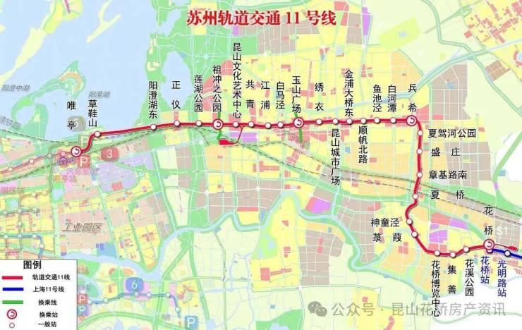 上海地铁11号线是国内首条跨省轨道线路,日均客流量超3万人次,昆山的苏州轨道交通11号线与上海11号线在花桥站同站换乘,整个沿沪板块,没有任何地区比花桥到上海更快捷、更便利。