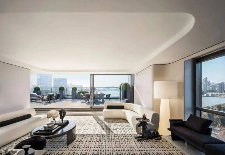 ·建面约240㎡边套,采用L型转角落地窗,打造了270°环幕瞰江视野,无论身处客厅、餐厅,都能以不同角度眺望黄浦江的波光粼粼。