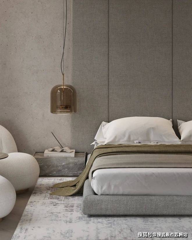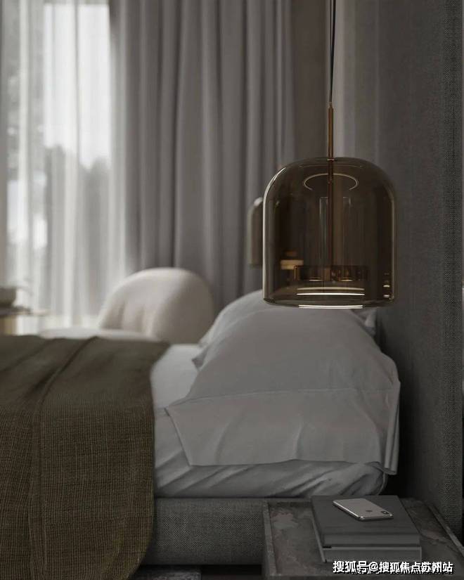 苏州上华璟庭售楼处电话☎:400-8118-224(售楼处预约看房热线)卧室中灰色的主色调与客厅相呼应,柔软蓬松的白色床品为屋主打造出了一个温馨舒适的休憩空间,床头柜选用灰色大理石,上方的床头灯则是金属与玻璃,不同材质的搭配让空间显得更加精致,富有美感.落地窗前的小沙发与茶几,能够让屋主在这度过舒适的下午茶时光.