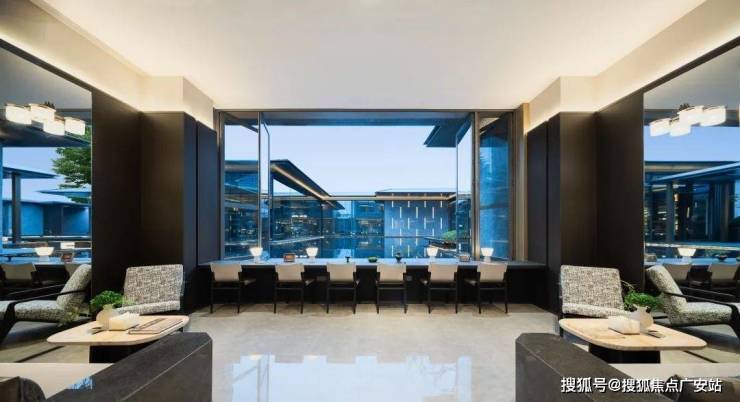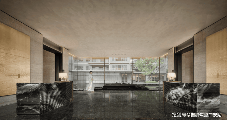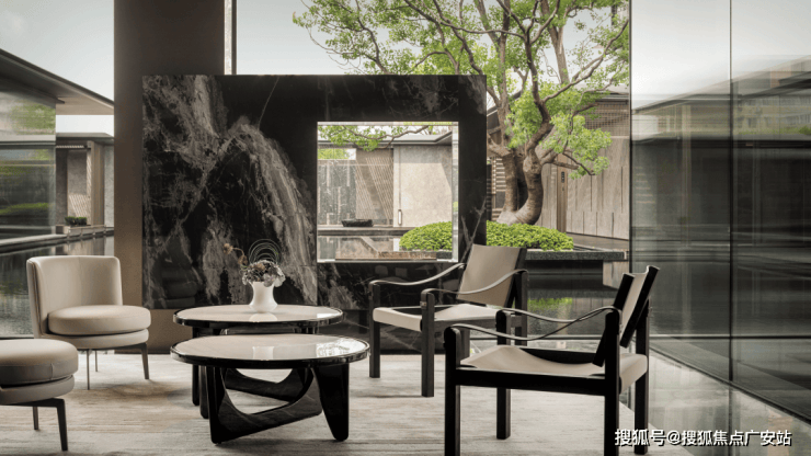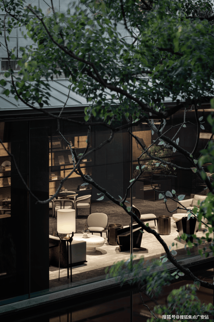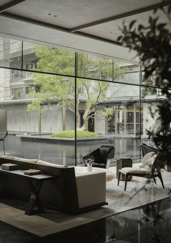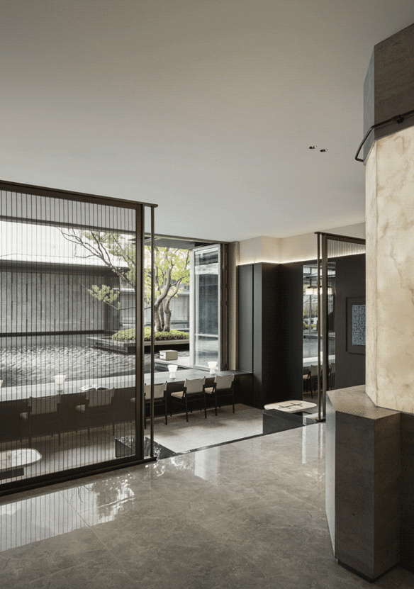 接待大厅模糊了其与水景的界限,在湖光潋滟之中,树影摇曳婆娑,四季的光辉景致,天地的悠然从容,皆被纳入空间规划,成就了东方式的隐奢之美。